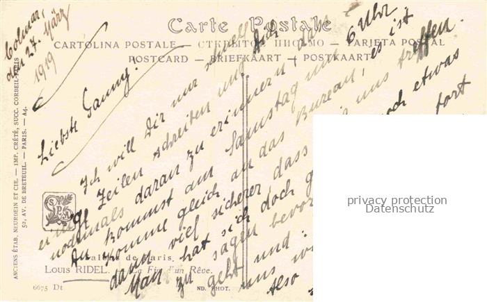 RIDEL Louis Kuenstlerkarte Paris fin Reve