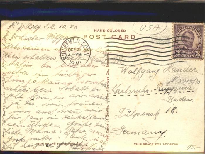 11032243 old postcard Ridgefield Connecticut Main Street postalisch gelaufen KatCode: 14140070000000