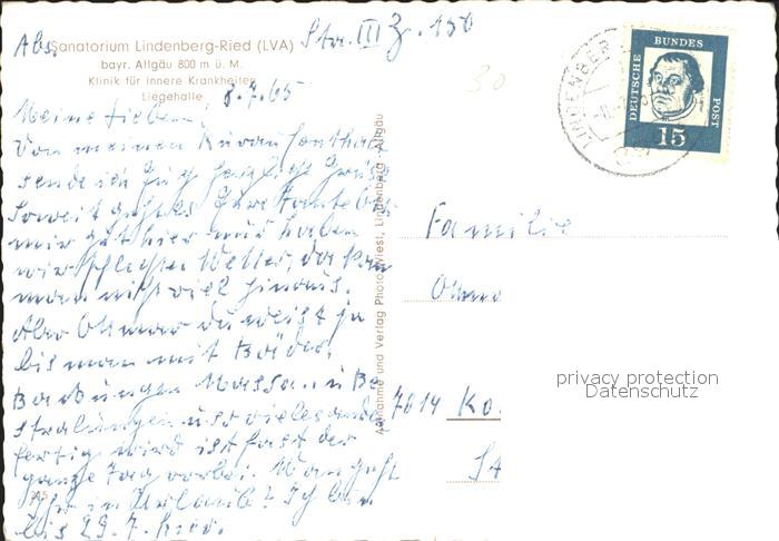 72201585 alte Postkarte Ried Altusried Sanatorium Lindenberg Klinik Liegehalle postalisch gelaufen Erhaltung siehe scans KatCode: 11110009780112