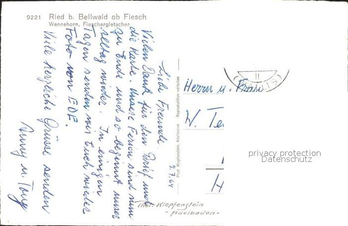 11745739 Ried Bellwald mit Wennehorn Fieschergletscher postalisch nicht gelaufen Erhaltung siehe scans KatCode: 11470230705402