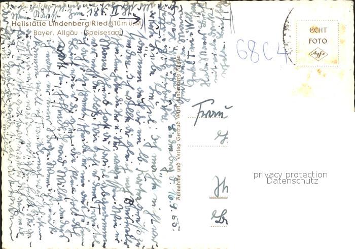 71925003 alte Postkarte Ried Isny Heilstaette Lindenberg Speisesaal postalisch gelaufen Erhaltung siehe scans KatCode: 11110008436049