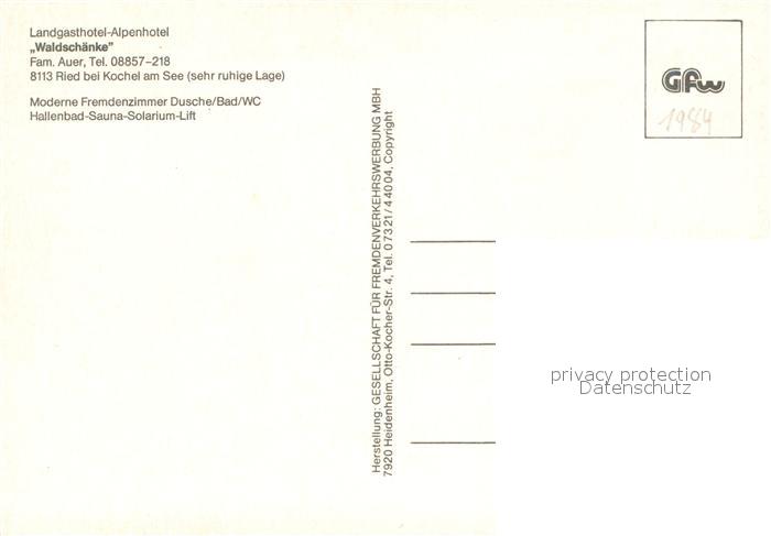 73641203 Ried Kochel See Landgasthof Alpenhof Waldschaenke Gastraum Hallenbad postalisch nicht gelaufen Erhaltung siehe scans [WerneD78] KatCode: 11110009173133