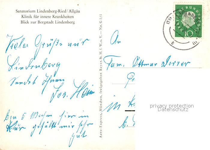 73008415 alte Postkarte Ried Lindenberg Allgaeu Klinik fuer innere Krankeiten Fliegeraufnahme postalisch gelaufen Erhaltung siehe scans [WerneD78] KatCode: 11110009776117