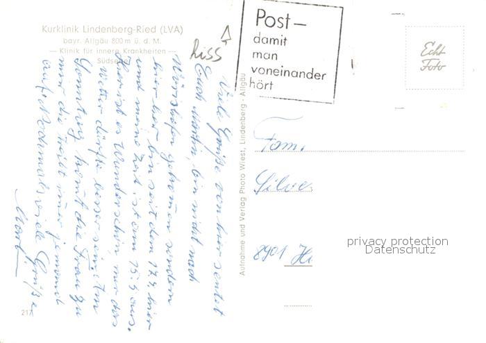 72985601 alte Postkarte Ried Lindenberg Allgaeu Kurklinik postalisch gelaufen Erhaltung siehe scans [FriedD77] KatCode: 11110009776117