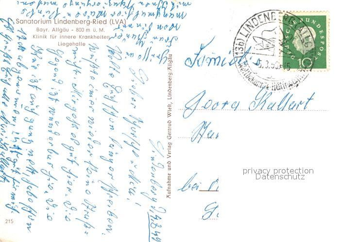 72979651 alte Postkarte Ried Lindenberg Allgaeu Sanatorium postalisch gelaufen Erhaltung siehe scans [FriedD77] KatCode: 11110009776117