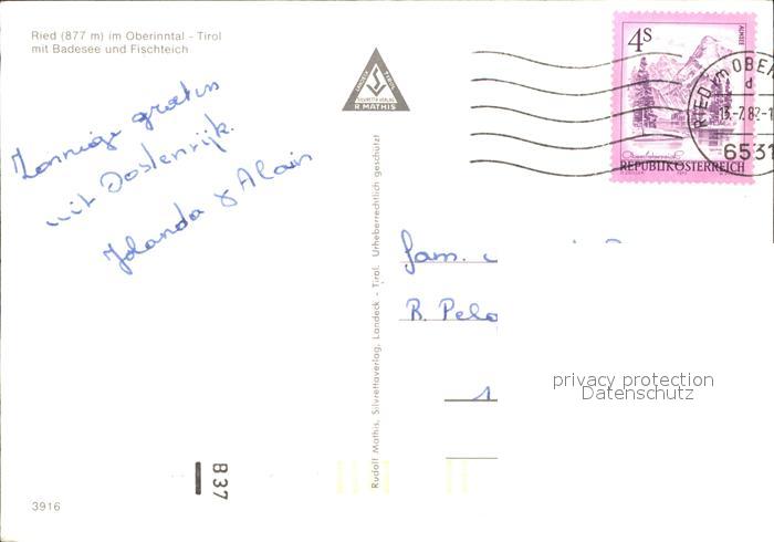 71974429 alte Postkarte Ried Oberinntal Badesee Fischteich postalisch gelaufen Erhaltung siehe scans KatCode: 11390334070620