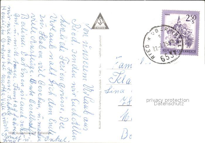 72444441 alte Postkarte Ried Oberinntal Gesamtansicht mit Alpenpanorama Campingplatz postalisch gelaufen Erhaltung siehe scans KatCode: 11390334070620