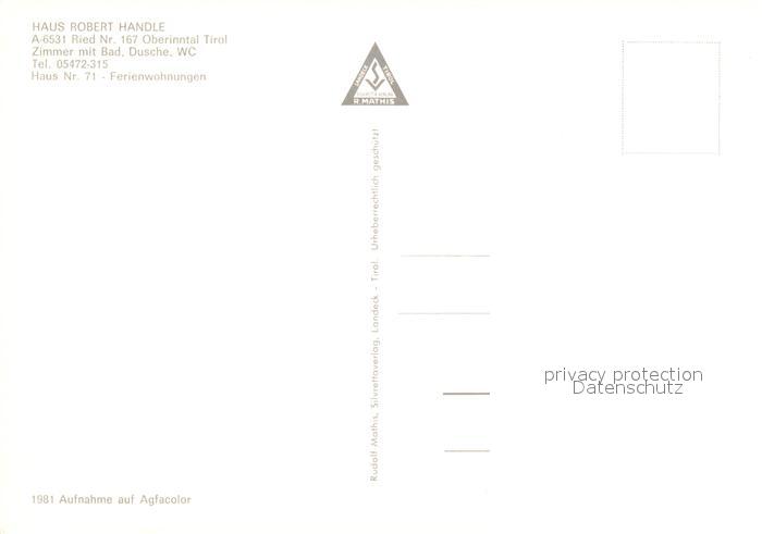 13192465 Ried Oberinntal Haus Robert Handle postalisch nicht gelaufen Erhaltung siehe scans [PaolaD17] KatCode: 11390334070620