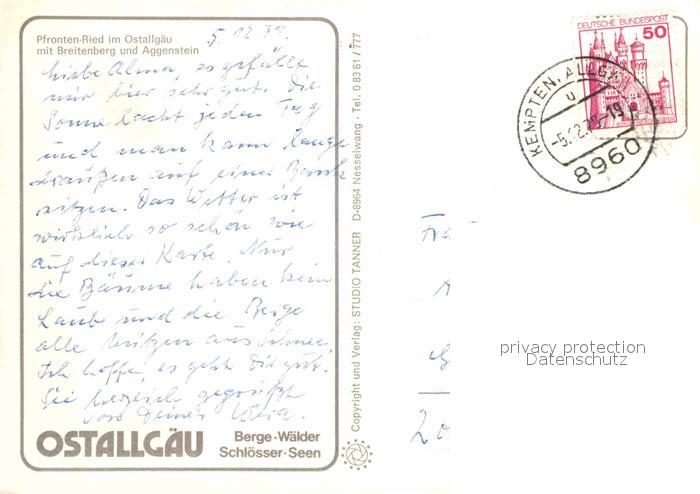 72756104 alte Postkarte Ried Pfronten Breitenberg Aggenstein postalisch gelaufen Erhaltung siehe scans [NatalD47] KatCode: 11110009777159
