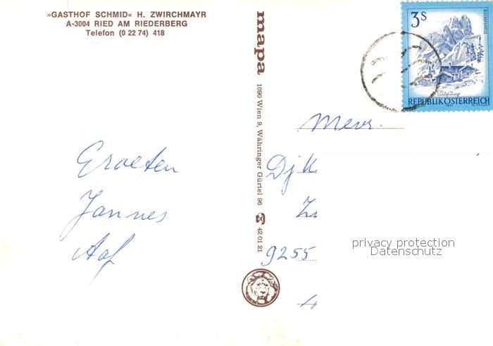 72870419 alte Postkarte Ried Riederberg Gasthaus Schmid postalisch gelaufen Erhaltung siehe scans [LiesaD40] KatCode: 11390126032131
