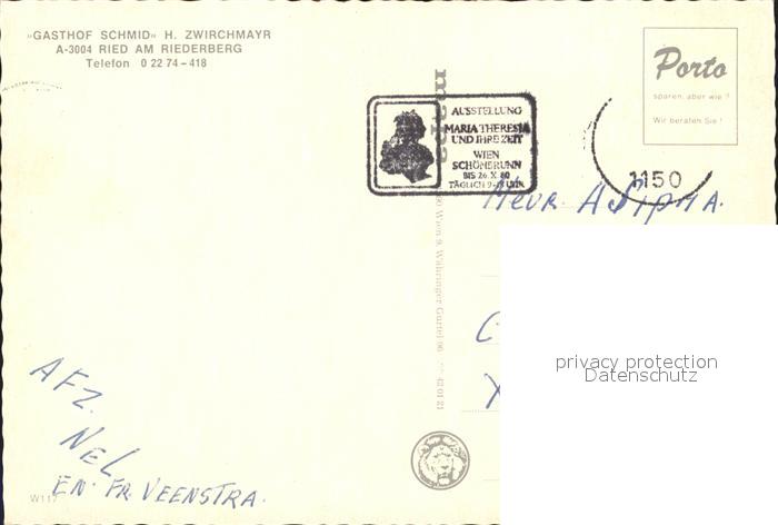 72232518 alte Postkarte Ried Riederberg Gasthof Schmid postalisch gelaufen Erhaltung siehe scans KatCode: 11390126032131