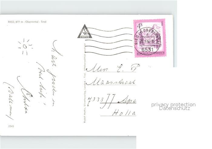 72299932 alte Postkarte Ried Tirol postalisch gelaufen Erhaltung siehe scans KatCode: 11390334070624