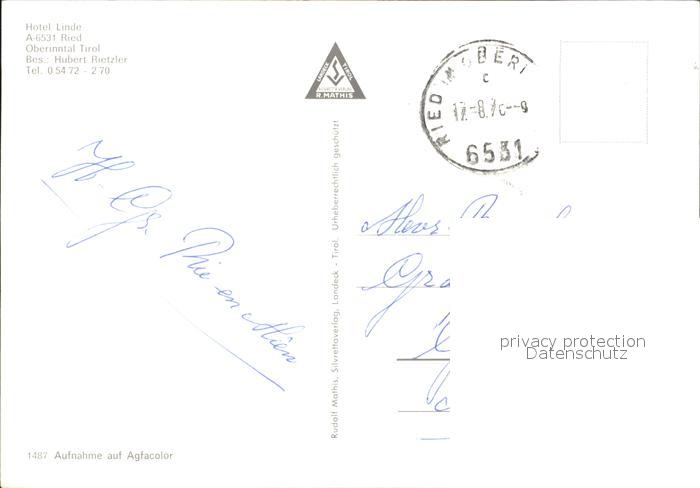 72286538 alte Postkarte Ried Tirol Hotel Linde postalisch gelaufen Erhaltung siehe scans KatCode: 11390334070624
