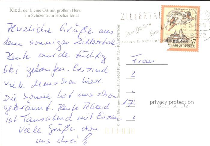 71872049 alte Postkarte Ried Zillertal postalisch gelaufen Erhaltung siehe scans KatCode: 11390335070923