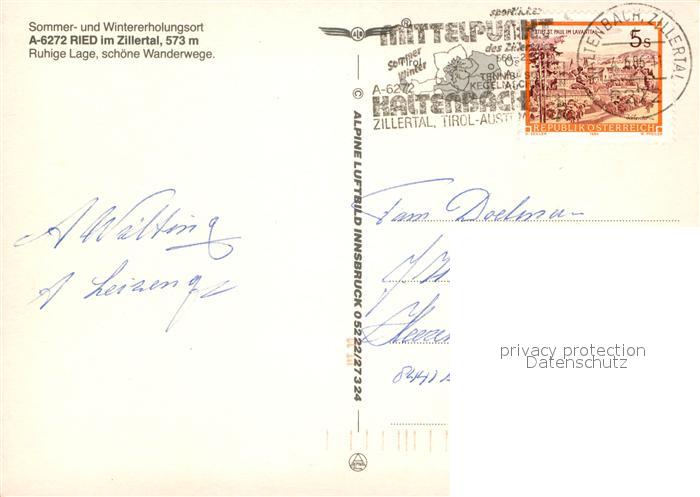 73033404 alte Postkarte Ried Zillertal Fliegeraufnahme postalisch gelaufen Erhaltung siehe scans [PaolaD17] KatCode: 11390335070923