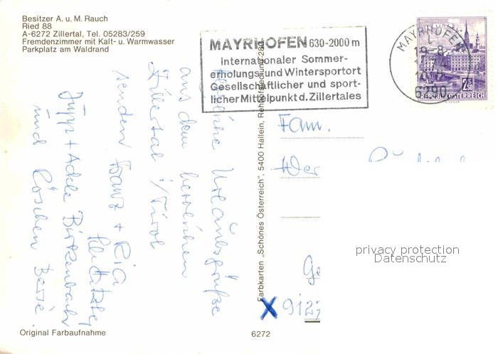 72668910 alte Postkarte Ried Zillertal Gaestehaus Rauch postalisch gelaufen Erhaltung siehe scans [FriedD77] KatCode: 11390335070923