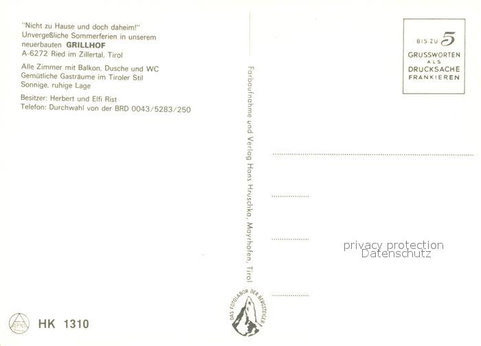 73587012 Ried Zillertal Grillhof postalisch nicht gelaufen Erhaltung siehe scans [PaolaD17] KatCode: 11390335070923