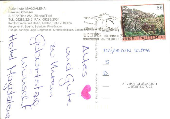 72444442 alte Postkarte Ried Zillertal Hotel Magdalena Alpenpanorama postalisch gelaufen Erhaltung siehe scans KatCode: 11390335070923