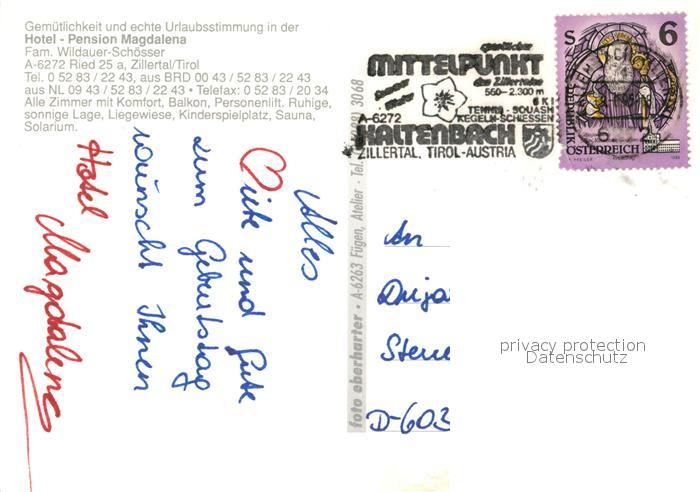 73171650 alte Postkarte Ried Zillertal Hotel Magdalena postalisch gelaufen Erhaltung siehe scans [NatalD47] KatCode: 11390335070923