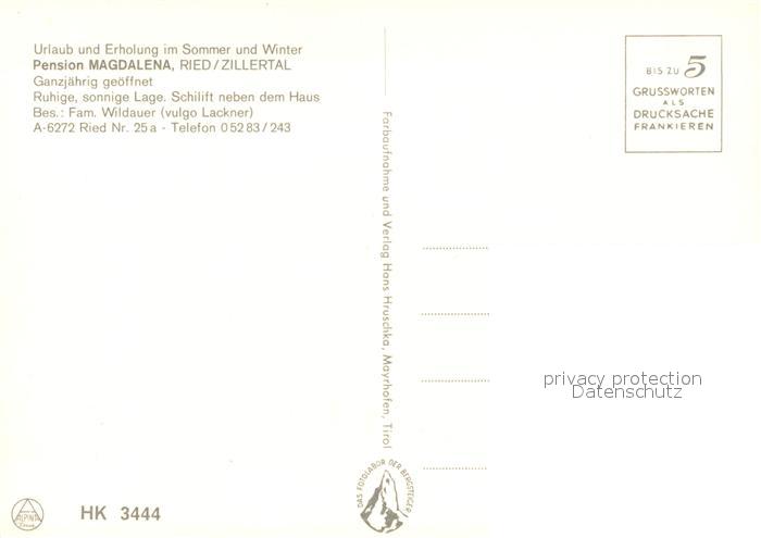 13326915 Ried Zillertal Pension Magdalena postalisch nicht gelaufen Erhaltung siehe scans [KathaD81] KatCode: 11390335070923