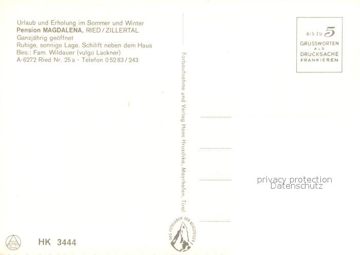 13189407 Ried Zillertal Pension Magdalena postalisch nicht gelaufen Erhaltung siehe scans [PaolaD17] KatCode: 11390335070923
