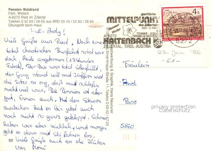 13171163 alte Postkarte Ried Zillertal Pension Waldrand Winter postalisch gelaufen Erhaltung siehe scans [KathaD81] KatCode: 11390335070923