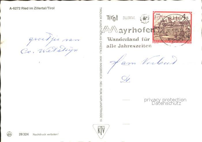 72443802 alte Postkarte Ried Zillertal postalisch gelaufen Erhaltung siehe scans KatCode: 11390335070923