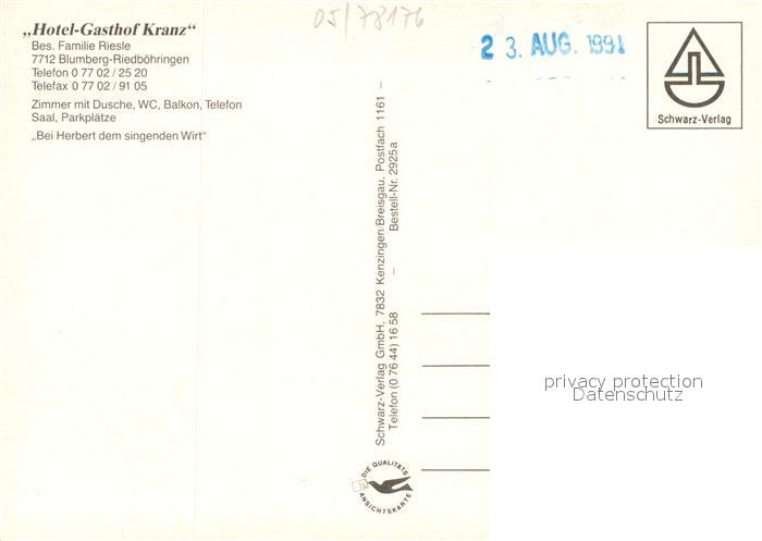 73704557 Riedboehringen Hotel Gasthof Kranz Beim singenden Wirt postalisch nicht gelaufen Erhaltung siehe scans [FriedD77] KatCode: 11110008326005