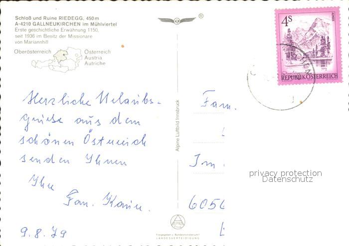 72597638 alte Postkarte Riedegg Fliegeraufnahme Schloss postalisch gelaufen Erhaltung siehe scans [LiesaD40] KatCode: 11110009777170