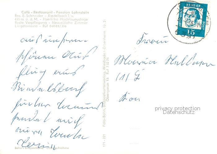 73854690 alte Postkarte Riedelbach Cafe Pension Lohnstein postalisch gelaufen Erhaltung siehe scans [FriedD77] KatCode: 11110006434013