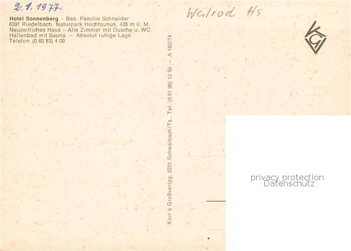 73845575 alte Postkarte Riedelbach Hotel Sonnenberg postalisch gelaufen Erhaltung siehe scans [WerneD78] KatCode: 11110006434013