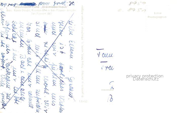 43352125 alte Postkarte Rieden Allgaeu Cafe Dreimaederlhaus postalisch gelaufen Erhaltung siehe scans [WerneD78] KatCode: 11110009777129