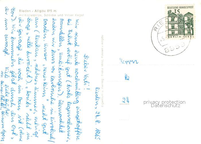 72928215 alte Postkarte Rieden Allgaeu Koellespitze Schlicke Vilser Kegel postalisch gelaufen Erhaltung siehe scans [AndreD76] KatCode: 11110009777129