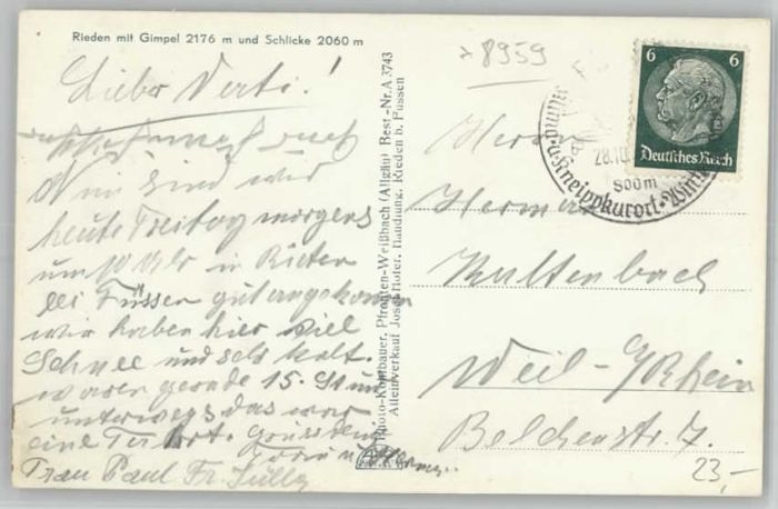 40246709 alte Postkarte Rieden bei Fuessen postalisch gelaufen KatCode: