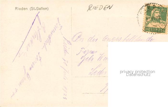 13797950 alte Postkarte Rieden SG Ortsansicht mit Kirche Alpen postalisch gelaufen Erhaltung siehe scans [FriedD77] KatCode: 11470190570718
