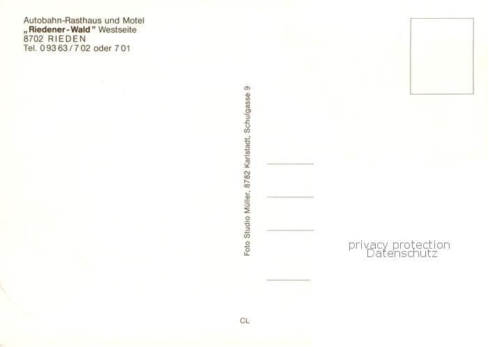 73846007 Rieden Unterfranken Autobahn Rasthaus Motel Riedener Wald Gastraeume Park postalisch nicht gelaufen Erhaltung siehe scans [FriedD77] KatCode: 11110009679143