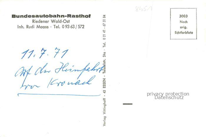74049417 Rieden Unterfranken Bundesautobahn Rasthof Riedener Wald-Ost postalisch nicht gelaufen Erhaltung siehe scans [FriedD77] KatCode: 11110009679143