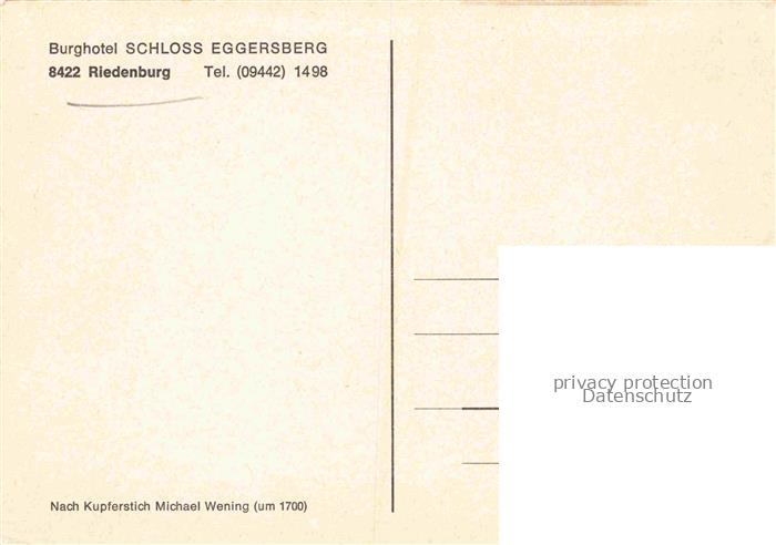 74040201 Riedenburg Altmuehltal Kelheim Bayern Burghotel Schloss Eggersberg nach Kupferstich Michael Wening Kuenstlerkarte postalisch nicht gelaufen Erhaltung siehe scans [FriedD77] KatCode: 11110009273164