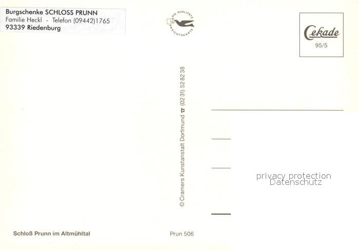 73063024 Riedenburg Altmuehltal Schloss Prunn Burgschenke Ausflugsdampfer postalisch nicht gelaufen Erhaltung siehe scans [FriedD77] KatCode: 11110009273164