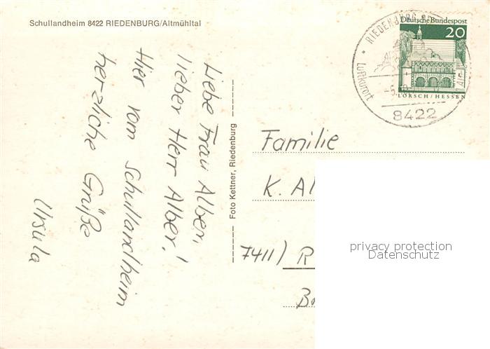73835760 alte Postkarte Riedenburg Altmuehltal Schullandheim Details postalisch gelaufen Erhaltung siehe scans [WerneD78] KatCode: 11110009273164