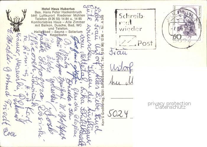 72417397 alte Postkarte Riedener Muehlen Hotel Haus Hubertus postalisch gelaufen Erhaltung siehe scans KatCode: 11110007137093