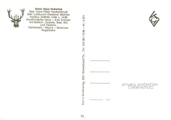 73645719 Riedener Muehlen Hotel Haus Hubertus Fliegeraufnahme postalisch nicht gelaufen Erhaltung siehe scans [WerneD78] KatCode: 11110007137093