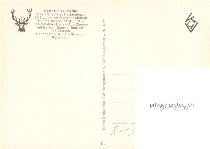 73016356 Riedener Muehlen Hotel Haus Hubertus postalisch nicht gelaufen Erhaltung siehe scans [NatalD47] KatCode: 11110007137093
