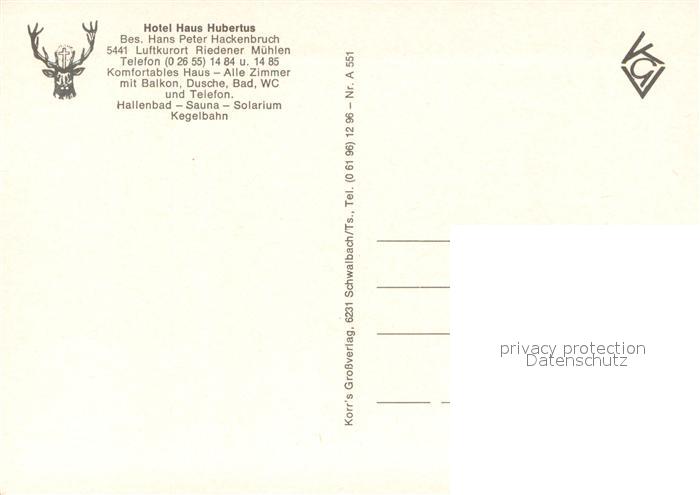 73641131 Riedener Muehlen Schloss Buerresheim Heilquelle Hotel Haus Hubertus Freiterrasse Riedener Muehle postalisch nicht gelaufen Erhaltung siehe scans [WerneD78] KatCode: 11110007137093