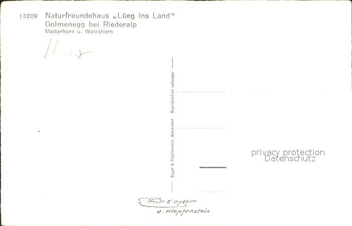 12007755 Riederalp Naturfreundehaus Lueeg ins Land Golmenegg Matterhorn Weisshorn postalisch nicht gelaufen Erhaltung siehe scans KatCode: 11470230730562
