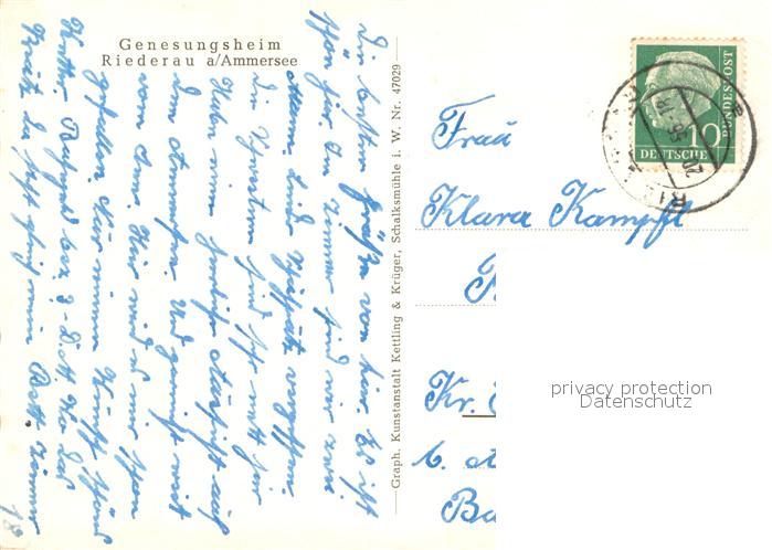 73641201 alte Postkarte Riederau Ammersee Genesungsheim postalisch gelaufen Erhaltung siehe scans [WerneD78] KatCode: 11110009181114