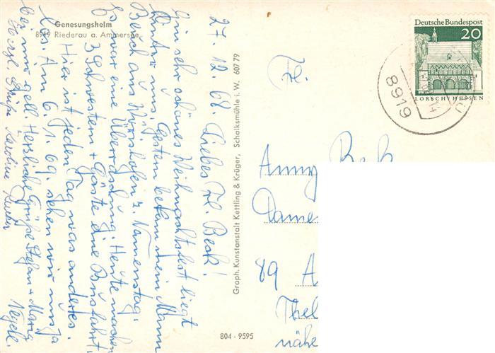 73877339 alte Postkarte Riederau Ammersee Genesungsheim Speisesaal Seepartie postalisch gelaufen Erhaltung siehe scans [WerneD78] KatCode: 11110009181114