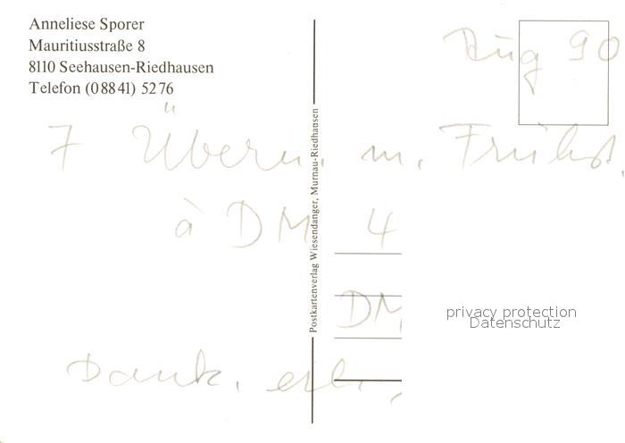 73712113 Riedhausen Staffelsee Anneliese Sporer postalisch nicht gelaufen Erhaltung siehe scans [WerneD78] KatCode: 11110009180132