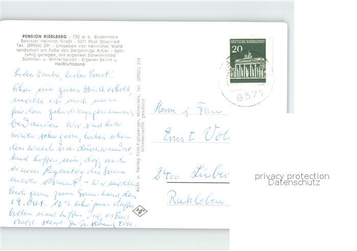 72217355 alte Postkarte Riedlberg Pension Arber postalisch gelaufen Erhaltung siehe scans KatCode: 11110009187156