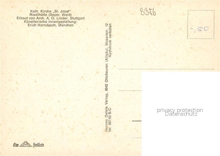73106580 Riedlhuette Katholische Kirche Sankt Josef postalisch nicht gelaufen Erhaltung siehe scans [KathaD81] KatCode: 11110009272143